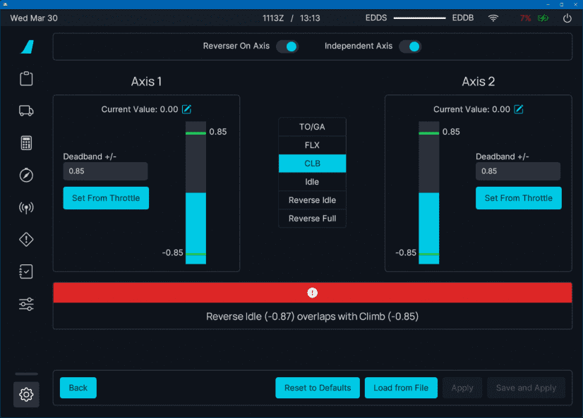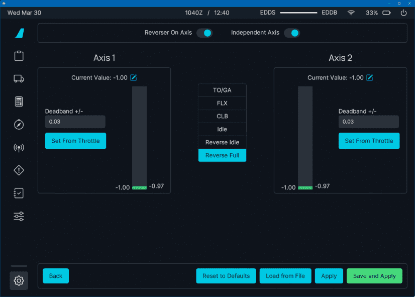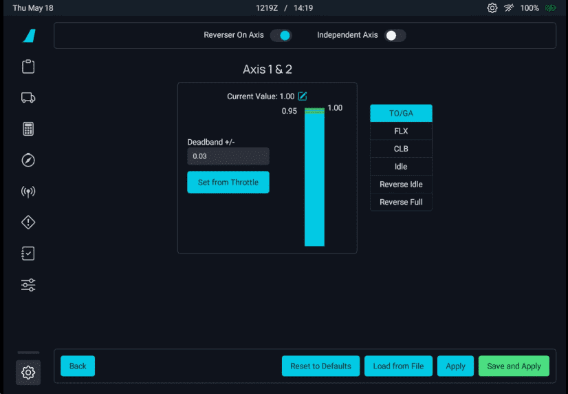 The throttle in the cockpit should now move in the correct direction. If not, check the Reverse Axis box here:
