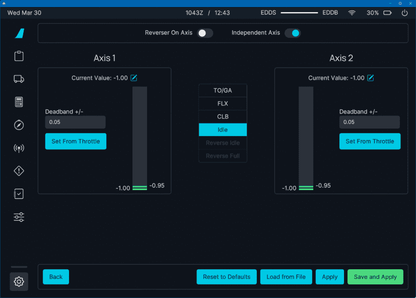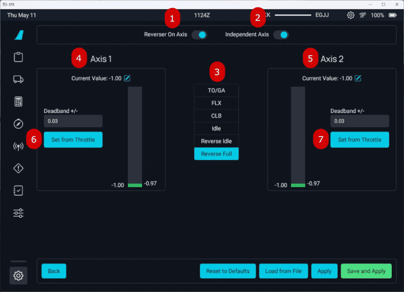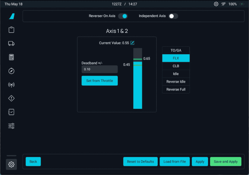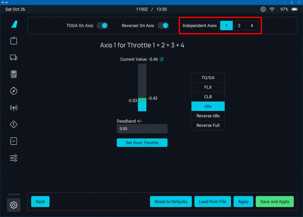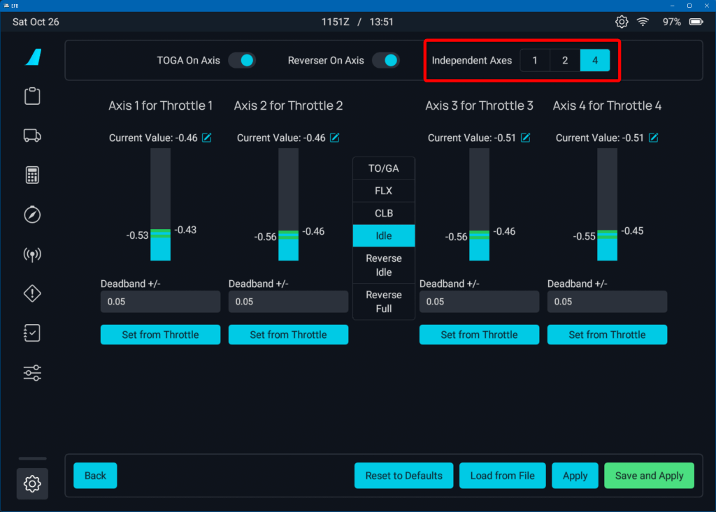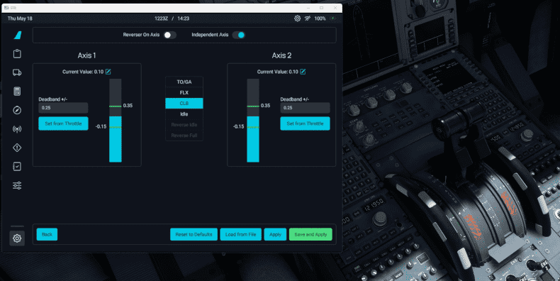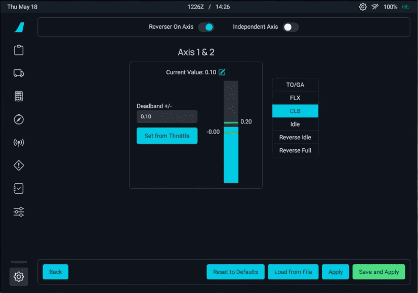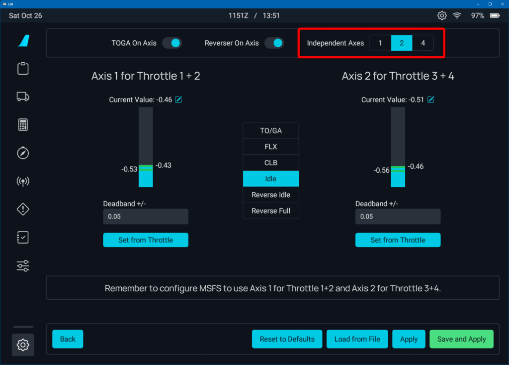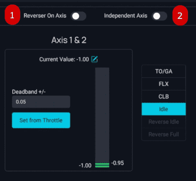 Set Independent Axis to ON if you have two throttle levers. If you only have one throttle lever, set it to OFF.