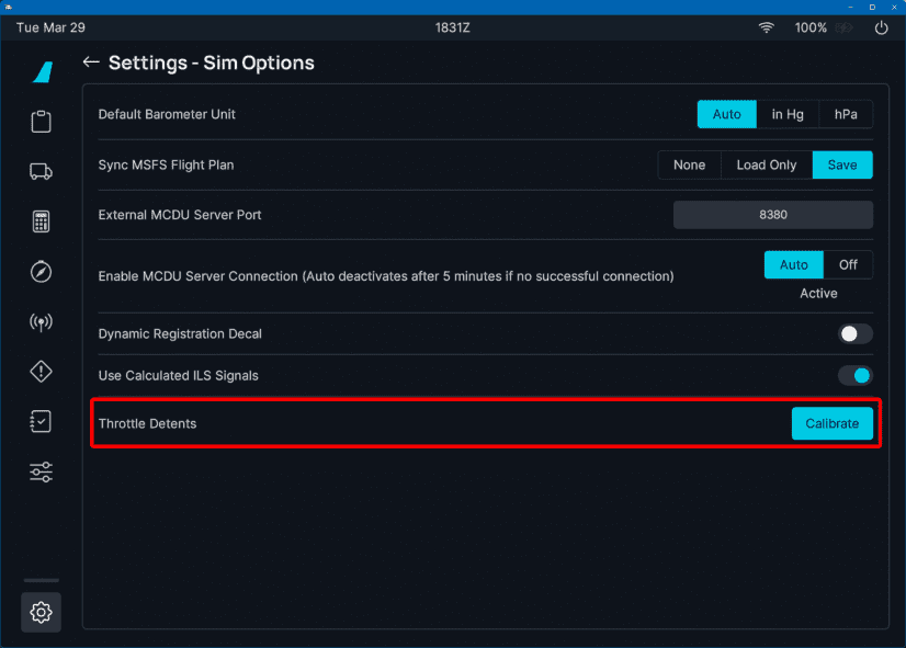Sim Options EFB-Calibrate