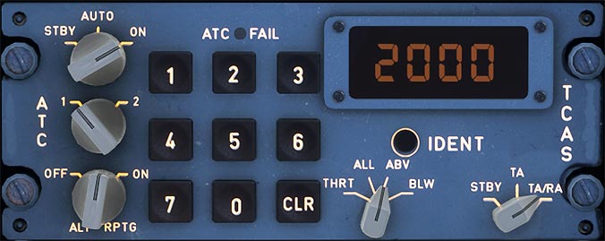 The TCAS panel can be found on the lower pedestal to the right of the throttle quadrant.