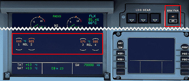 BRK FAN) on if you get a hot brakes ECAM warning. -
