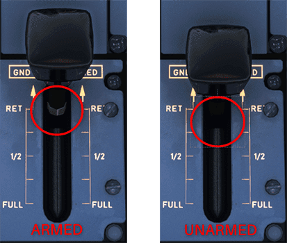Speed Brakelever (Ground Spoilers) by pushing down on the lever. -