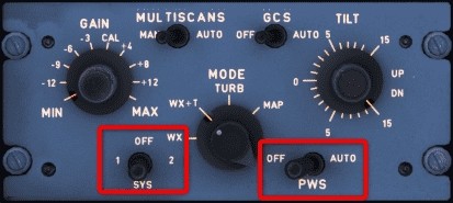 RADARand Predictive Windshear System (PWS) to OFF. -