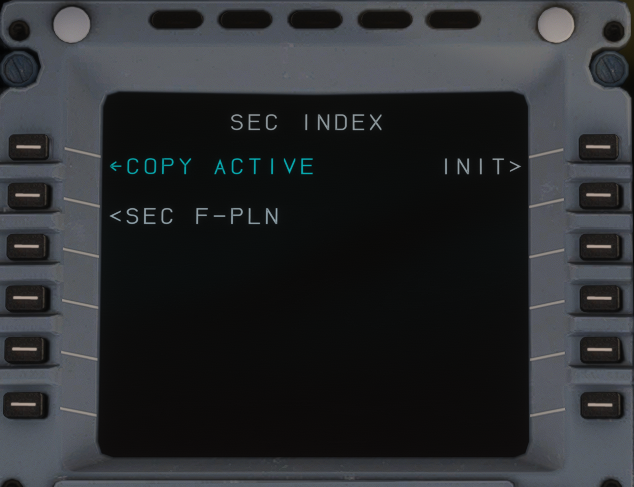 This MCDU page provides various data for the pilots. It has two pages (accessed by using the horizontal slew keys). It will not be used for this tutorial.