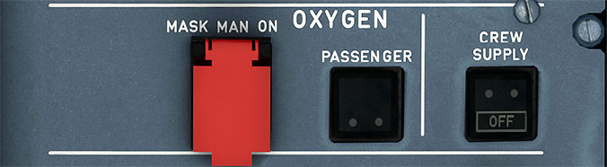 - When the OXYGEN CREW SUPPLY switch is selected ON, the OFF light extinguishes, and the cockpit oxygen supply valve is open. Low-pressure oxygen is supplied to the masks.