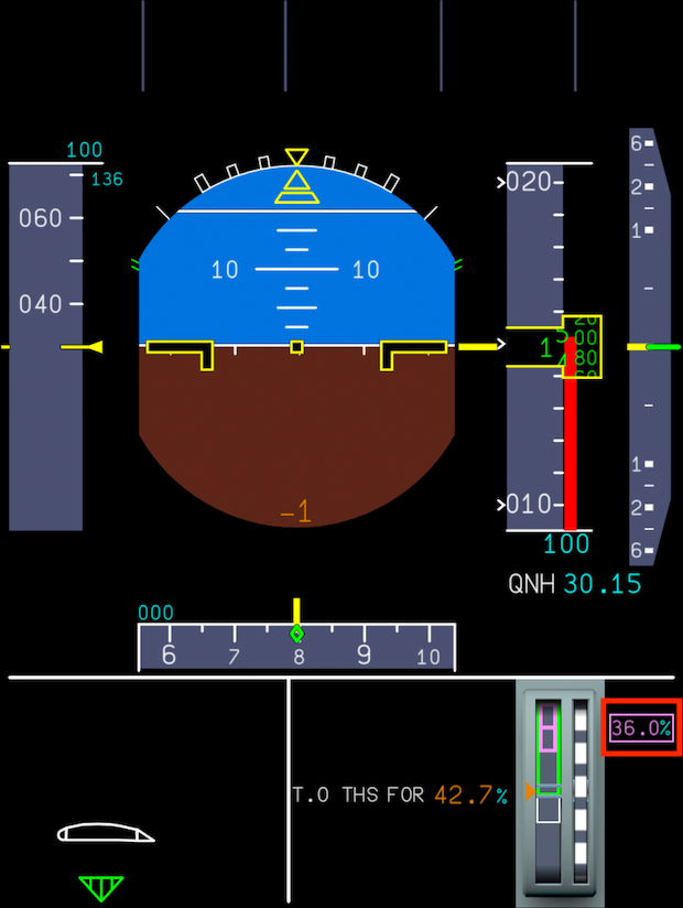 You can find the Trimmable Horizontal Stabilizer Nose Forward (THS FOR) value on the PFD in the magenta box. Make sure all loading (passengers, luggage and fuel) has finished to get an accurate reading.