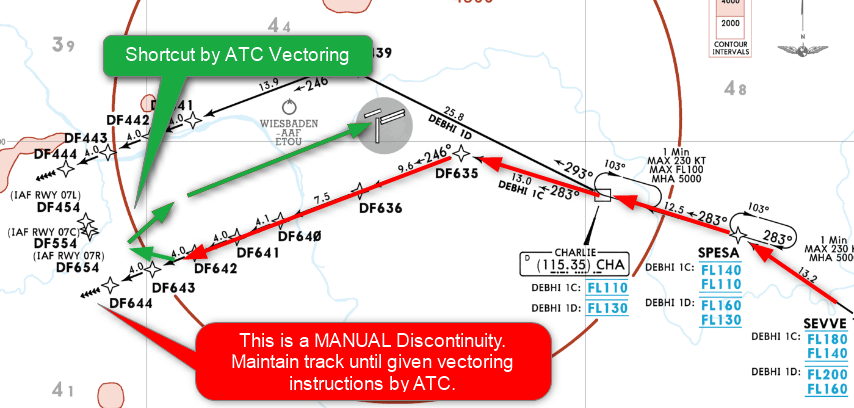 IAP are often designed for handling maximum traffic in even bad weather conditions. With only little traffic and good weather, it is quite common that ATC instructs the pilot to leave the approach route by giving the pilot heading vectors for a more direct route to the Final Approach Fix (FAF, also called final approach point).