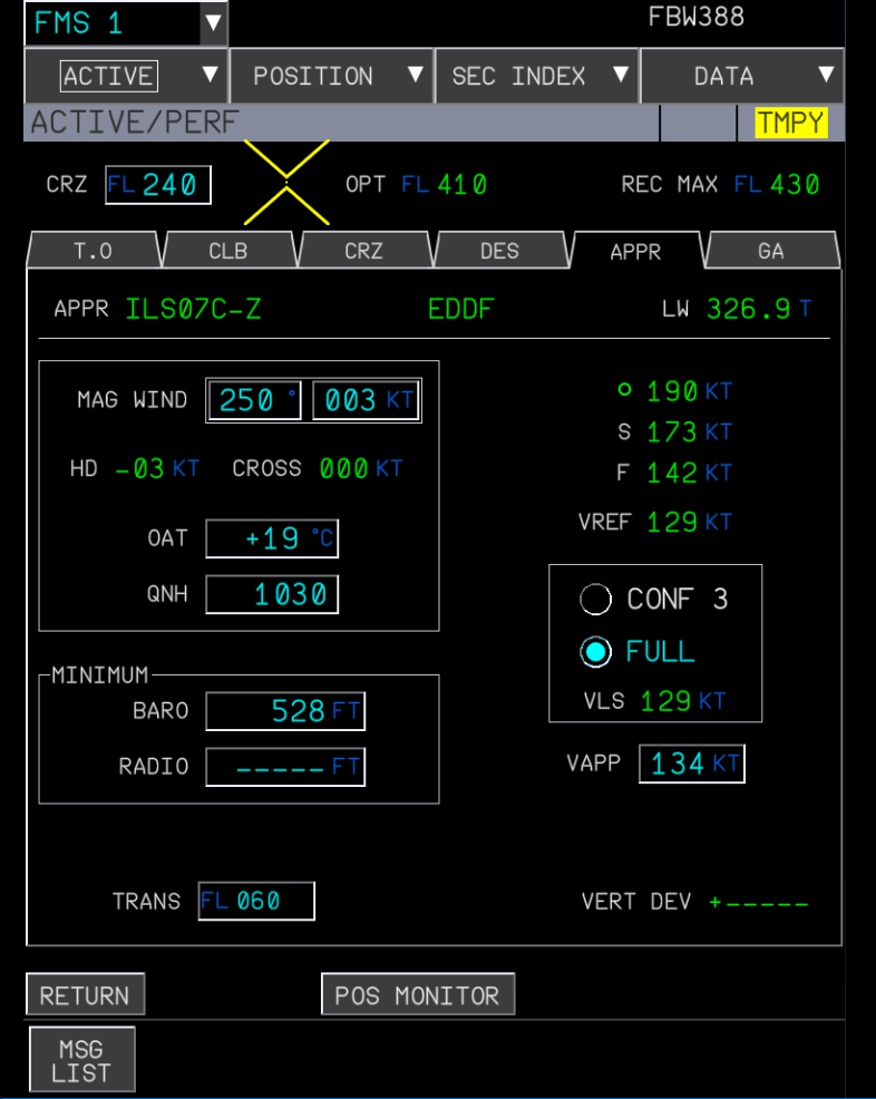 - Manually, when the flight crew clicks on the ACTIVATE APPR on the FMS PERF page, or