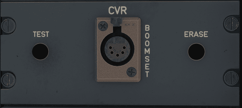 The Cockpit Voice Recorder (CVR) Panel is used to control the cockpit voice recorder system.