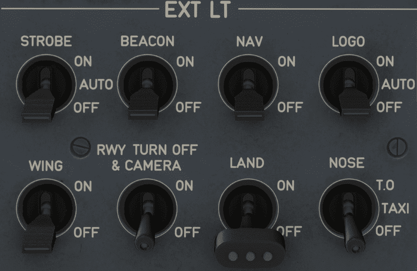 - Taxi and takeoff lights are off.