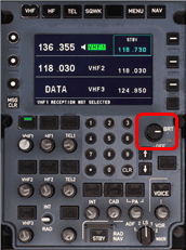 - The associated communication mean (i.e. VHF 1(2)(3)) is in transmission mode.