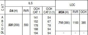 | ILS CAT I R26L | 520 | 550 | 200 |