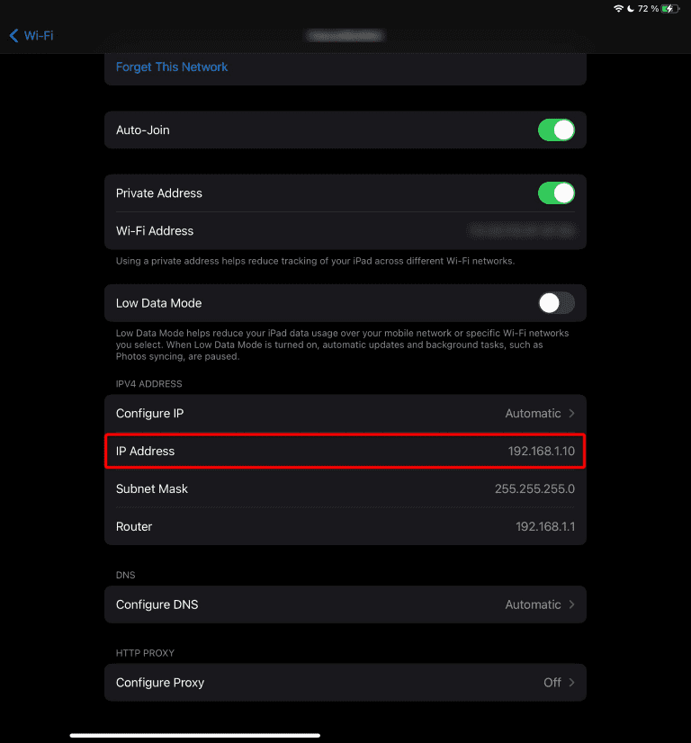 Your device should typically have an IP Address starting with the same three sets of numbers (starting with 192.168.1 in this case). This is a good way to quickly verify that your remote device is even on the same network.